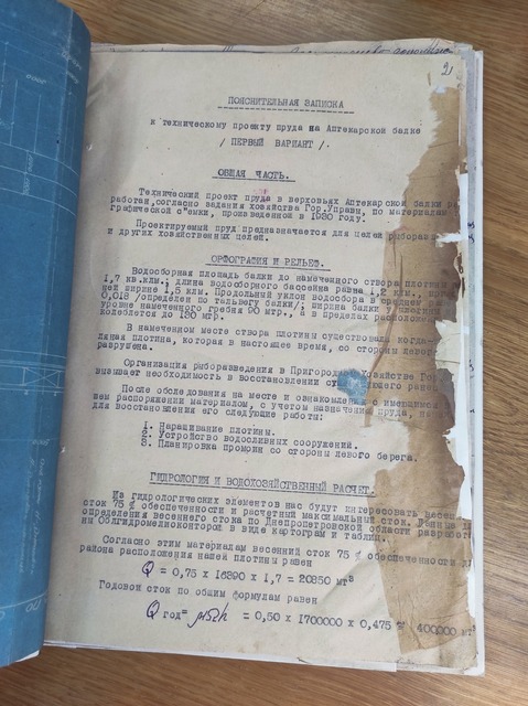Что разрушило пруд, пока не понятно, возможно люди и события, возможно природные явления и время. Но уже в 30-е годы создаётся спецкомиссия по восстановлению пруда. Ведутся замеры на месте и разрабатывается техдокументация для восстановления рыбного пруда. Чем тогда закончилась эта затея из найденных документов не понятно, но вот уже в документах, времён немецкой оккупации, в 1943 году появляются новые ходатайства, о строительстве дамбы и восстановлении пруда, для продовольственных нужд. За основу берутся ещё советские замеры и показатели, сделанные тогда в середине 30-х, проектируется новый план, бюджет