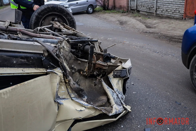 Там зіткнулись Niva та Daewoo. Внаслідок аварії Niva перекинулась на дах.