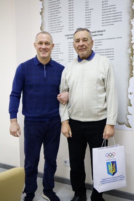Он вручил спортсменам сувениры от Отделения НОК Украины в Днепропетровской области и предоставил финансовую помощь. А затем сделали совместное фото с легендами ветеранского спорта Днепропетровщины.