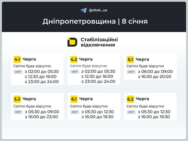 Увага! Час та обсяг застосування обмежень можуть змінитись. Стежте за інформацією на офіційних сторінках ДТЕК, ЦЕК.
