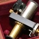 Перше, що звертає на себе увагу – футляр із золотим написом «E. Leitz, Wetzlar». У футлярі знаходиться оригінальний окуляр до мікроскопа. Компанія E. Leitz, Wetzlar – це історичне німецьке оптичне підприємство, засноване в 1849 р. Карлом Келлнером, яке пізніше стало всесвітньо відомим брендом Leica, яке спеціалізується на високоякісних мікроскопах, фотокамерах і іншій точної оптиці. У 1869 р. Ернст Лейтц став одноосібним власником, назвав компанію своїм ім'ям, а його син Ернст Лейтц II у 1920-і рр. почав масове виробництво легендарних камер Leica, що зробило бренд всесвітньо відомим. Штаб-квартира досі знаходиться у м. Ветцлар (Німеччина). Сьогодні компанія існує як кілька окремих, але пов'язаних підрозділів: Leica Microsystems, що виробляє мікроскопи, та Leica Camera AG, що випускає камери.