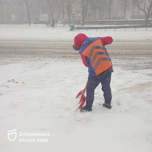 У Дніпра розпочався снігопад, і снігоприбиральна техніка вже виїжджає на вулиці для безпечного руху транспорту та пішоходів.