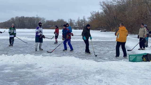 У Дніпрі на косі житлового масиву Перемога містяни вийшли на замерзлу водойму, аби зіграти в хокей просто неба.