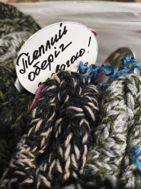 «Вчора отримали приємну посилочку від В'язального батальйону Дніпра, яка надійшла нам.Ці шкарпетки, Теплий оберіг, будуть зігрівати нас холодними вечорами.