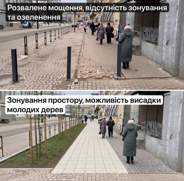 Как считают урбанисты Днепра, на этой улице необходимо не просто заменить покрытие тротуаров. Но и переосмыслить функции этой зоны. Например, создать при тротуаре небольшие газоны и зеленые зоны.
