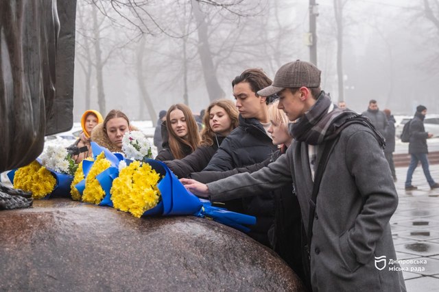 Представители городской и областной власти, активная молодежь собрались возле памятника Дмитрию Яворницкому, чтобы возложить цветы и почтить подвиг студентов, которые более столетия назад встали на защиту украинской государственности.