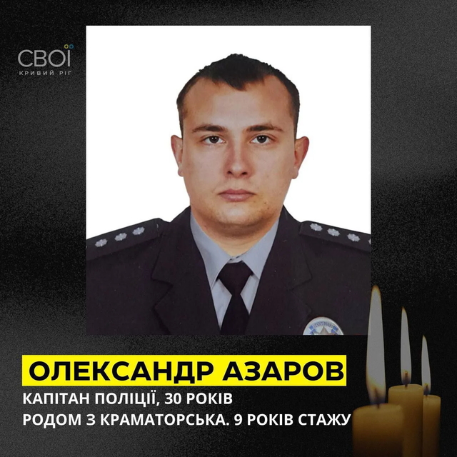 Для этой семьи это уже второе непоправимое горе. В сентябре 2024 года российская ракета попала в Криворожское районное управление полиции, в результате чего погиб внук Ольги — Александр Азаров.