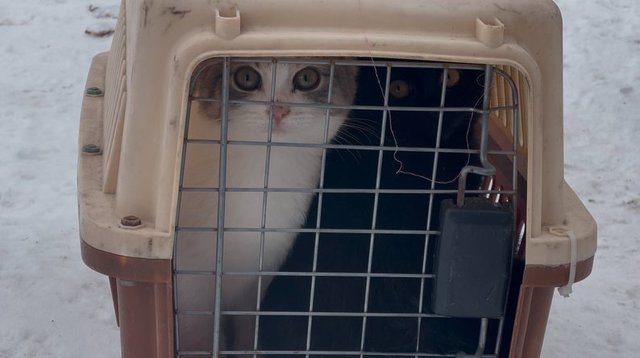 Последняя остановка на этот раз - Новониколаевка в Запорожской области. Владелица двух котиков попросила их забрать и передать родным. По словам женщины, в населенном пункте ситуация с безопасностью сейчас очень сложная: «шахеды» атакуют поселок каждый день.