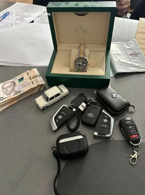 Під час обшуків у майора вилучено 51 тис. доларів США, 2,1 тис. євро, 201 тис. гривень, автомобілі, документи на елітну нерухомість, колекцію брендових речей вартістю понад 8 млн грн та боргові розписки на 120 тис. доларів. У заступниці вилучено боргові розписки на 20 тис. доларів, мобільні телефони, ноутбуки, банківські картки та документи.