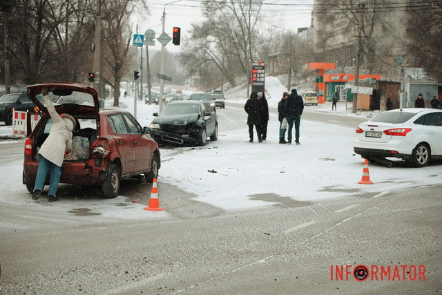 Столкнулись три машины – Audi, Ford и Skoda. Инцидент произошел в 8:34. Его сняла камера видеонаблюдения. Об этом сообщает Информатор со ссылкой на Ситуационный центр Днепра.