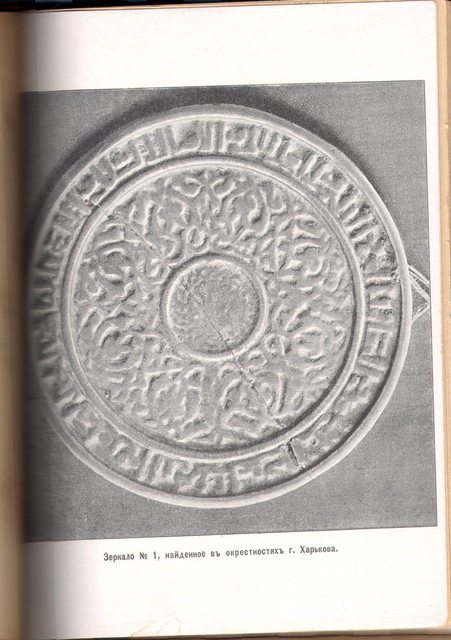 На фото — фрагмент бронзового дзеркала XIII–XIV століть. У 1910 році його знайшов Дмитро Яворницький у кургані представника кочової знатів селі Татарбранка (нині Орілька Дніпропетровської області). Дзеркало містить епіграфіку арабською мовою, виконану так званим письмом насх. Подібні дзеркала досить часто трапляються в похованнях та поблизу старих шляхів, особливо в наших краях. У 1854 році таке саме ціле дзеркало було знайдене поблизу Харкова студентом місцевого університету Криворотовим і передане до музею. Пізніше знахідку дослідили та опублікували вчені Д. Айналов та М. Катанов.