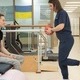«Зараз ми тренуємо м’язи спини та верхнього плечового поясу, оскільки для пересування на милицях йому потрібні сильні руки. Також працюємо над мобілізацією післяопераційного рубця та проводимо компресійну терапію, щоб сформувати правильну форму кукси. Хоча пацієнт у центрі лише нещодавно, його спортивне минуле та бажання повернутися на роботу значно полегшують процес. Вірю, що він матиме хороший результат і легко пройде етап адаптації до нового протезу», — каже фізична терапевтка Поліна.