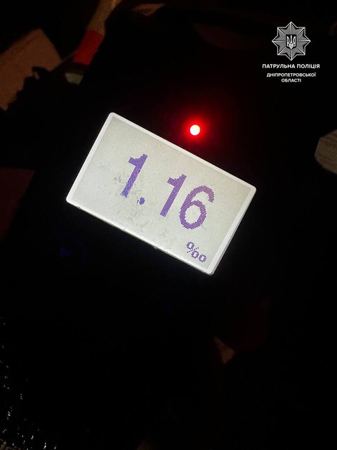 Днями у Амур-Нижньодніпровському районі водія автомобіля Volkswagen зупинили під час комендантської години. Він мав ознаки алкогольного сп'яніння та погодився пройти освідування. Результат — 1,16 проміле алкоголю. На нього склали протокол за ч.1 ст.130 КУпАП.