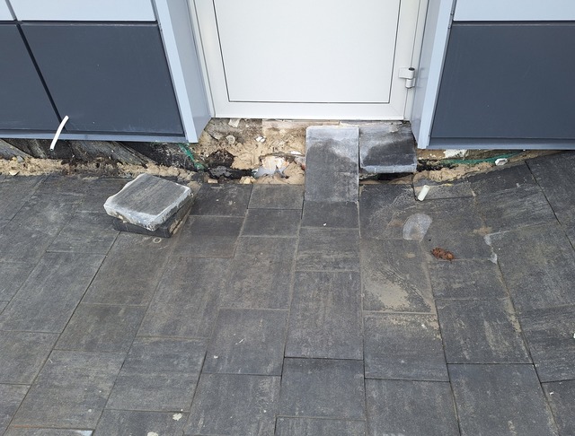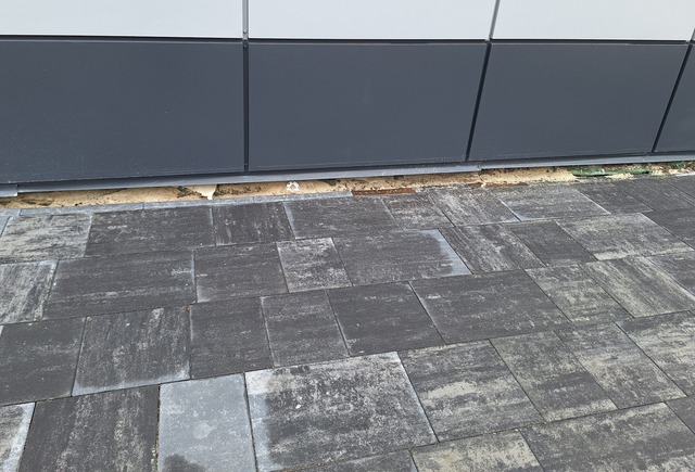 Біля новозбудованої будівлі – просадка ґрунту, порушена відмостка, ризик потрапляння води в підвал.