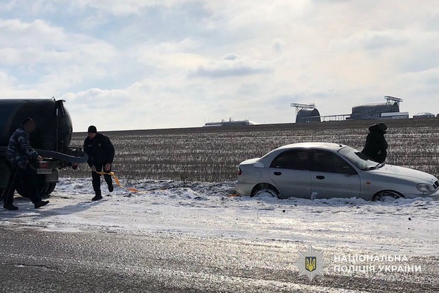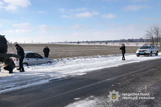 На место прибыли следственно-оперативная группа совместно с работниками сектора реагирования патрульной полиции отделения полиции №8 Криворожского районного управления полиции, которые патрулировали территорией обслуживания. Оценив ситуацию, правоохранители организовали помощь водителю. С помощью троса совместными усилиями вытащили транспортное средство из ледяной ловушки на проезжую часть дороги.