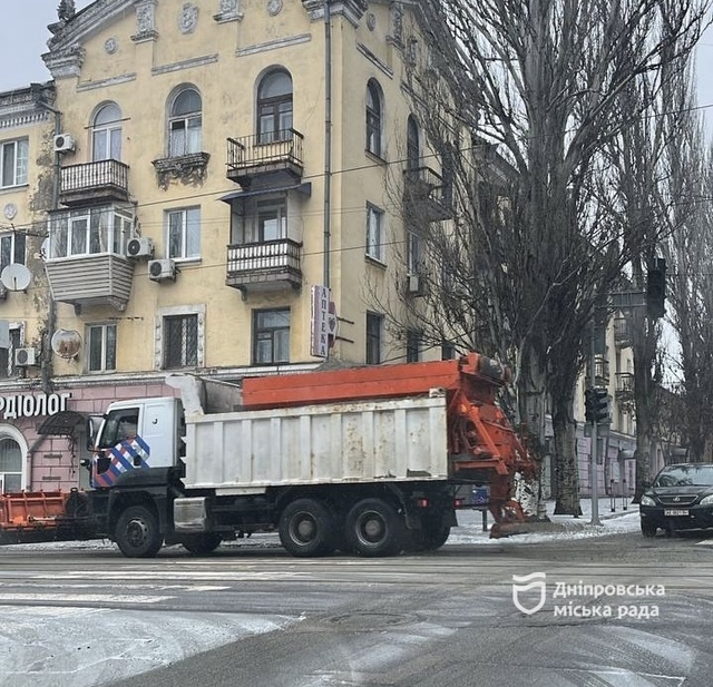 Через снігопад у Дніпрі комунальні служби працюють у посиленому режимі, щоб убезпечити рух транспорту та пішоходів.