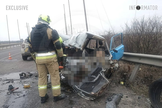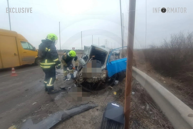 Там зіткнулись автомобілі ВАЗ та Toyota Land Cruiser. Внаслідок аварії загинули жінка, яку затисло всередині салону ВАЗ, та водій.