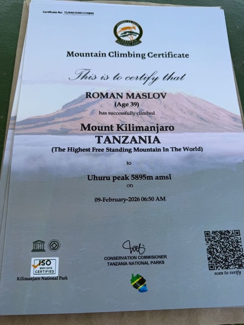 Украинский предприниматель из Днепра, инвестор и атлет Ironman Роман Владиславович Маслов совершил успешное восхождение на пик Ухуру — высшую точку горы Килиманджаро на высоте 5895 метров. Главной особенностью этого восхождения стало установление национального рекорда Украины в категории Спорт и Размеры, ведь Роман Маслов самостоятельно развернул на вершине самый большой национальный флаг, когда-либо поднятый на такую высоту одним человеком.