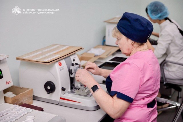 Несмотря на войну, она модернизируется. В прошлом году после реконструкции здесь открыли современную гистологическую лабораторию. Она оборудована оборудованием мирового уровня. Помогает установить точный диагноз, спланировать лечение, отследить эффективность терапии.