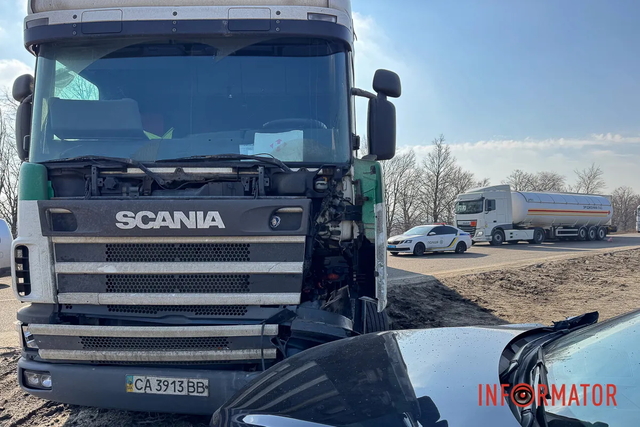 У четвер, 5 березня, під Дніпром зіткнулись дві автівки - фура Scania та Mazda.
