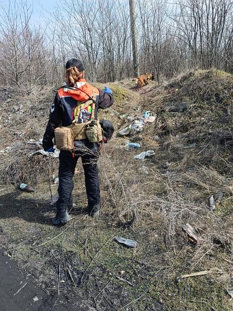 На основі 2-х кінологічних розрахунків: Борисенко Лариса + собака Мара (асистент Громов Сергій ) та Гончар Інна + Нікс були сформовані 2 пошукові підгрупи до складу яких увійшли ще поліцейські, які координували розшукові заходи на місцевості.