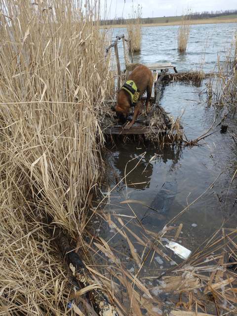 В якийсь момент, Мара явно почула запах, почала метатися та стримко рвонула в жахливий щільний очерет. Ми бачили, як наполеглива та сильна собака, буквально, ломає очерет в пошуках джерела запаху.
