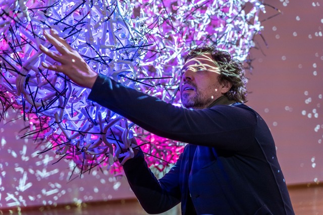 - 3d-меппінг зі складними динамічними тінями навколо скульптури;