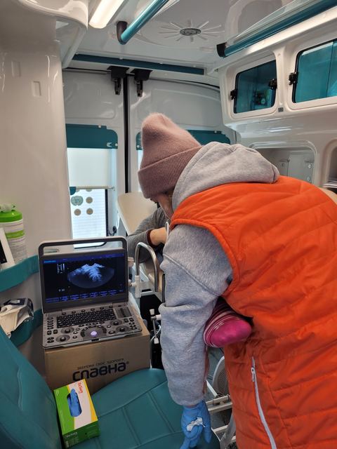 До складу бригади входять акушер-гінеколог, лікар УЗД, медичні сестри та водій. Прийом відбувається у фельдшерсько-акушерських пунктах, амбулаторіях або просто в обладнаному автомобілі. Про виїзди громади дізнаються заздалегідь — через оголошення, місцевих медиків і чати.