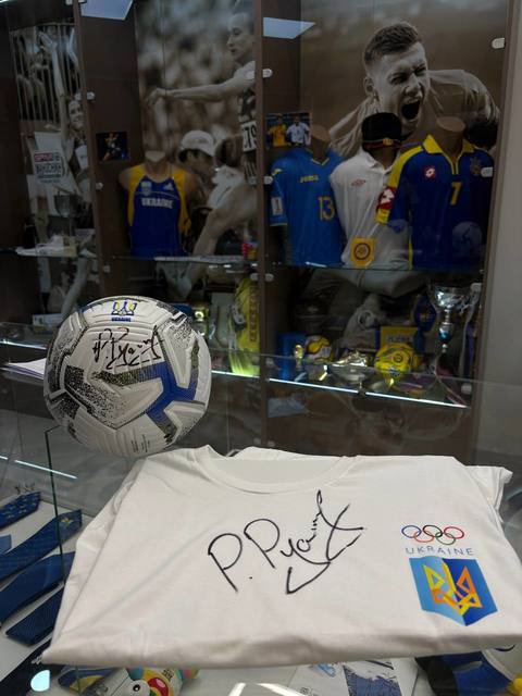 Для Музея Руслан Петрович передал футбольный мяч с автографом, а также оставил свою подпись на футболке Отделения НОК Украины в Днепропетровской области.