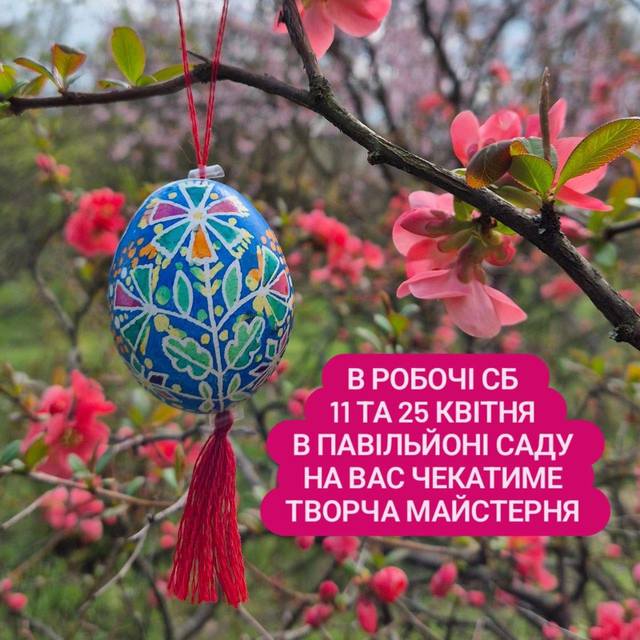 Також дві робочі суботи 11 та 25 квітня, у які на вас чекатимуть майстер класи, екскурсії., відвідування оранжереї.