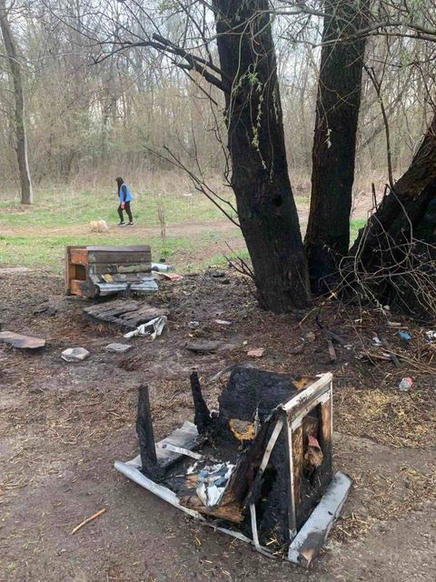 В Днепре на жилмассиве Победа, в начале косы, неизвестные сожгли дома для собак. Об этом сообщают в местных группах на Facebook.