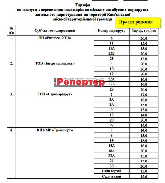 Якщо виконком підтримає (підкреслимо: за рішення ще не голосували), максимальна вартість проїзду може скласти 20 грн, мінімальна - 14 грн (на фото весь список).