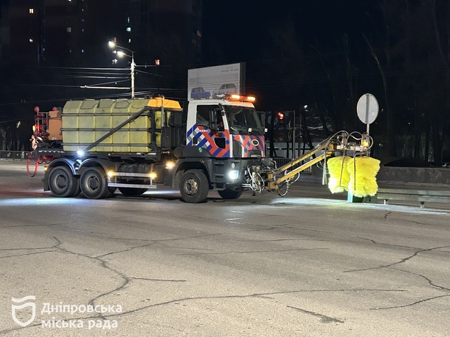 «В ночью на 8 апреля на маршруты вышли 10 больших подметально-уборочных машин, две машины типа «Бродвей» (самосвалы с прицепным оборудованием) и одна машина для мойки колесоотбойного бруса. Поскольку накануне прошел дождь и ожидаются заморозки, существует риск образования гололедицы, поэтому моющие работы дорожного покрытия не производим, чтобы не создать утром «каток». Это необходимо, ведь мы убираем остатки песка после зимы, а также ежедневно собираем новый мусор, листья, ветки и бытовые отходы водителей и пешеходов», — отметила начальница управления по благоустройству города департамента благоустройства и инфраструктуры Днепровского горсовета Светлана Литвинова.