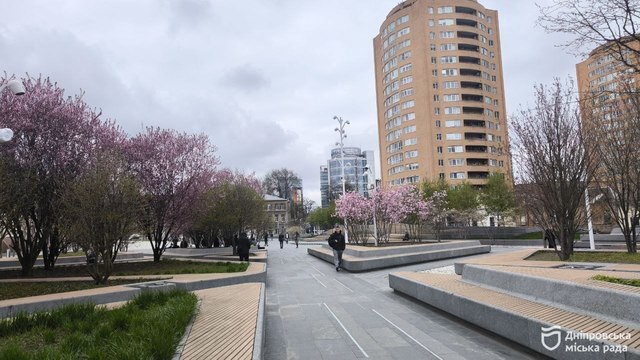 «Мы несколько раз проходили мимо этой площади и она привлекла нас своим современным и красивым видом. А вот эти розовые тучки цветов магнолии прекрасно дополняют архитектуру и придают ей красоту и гармонию. Кроме того, такие красивые цветы положительно влияют на психологическое состояние людей во время войны, ведь позволяют немного отвлечься от обыденности и окунуться в мир красоты».