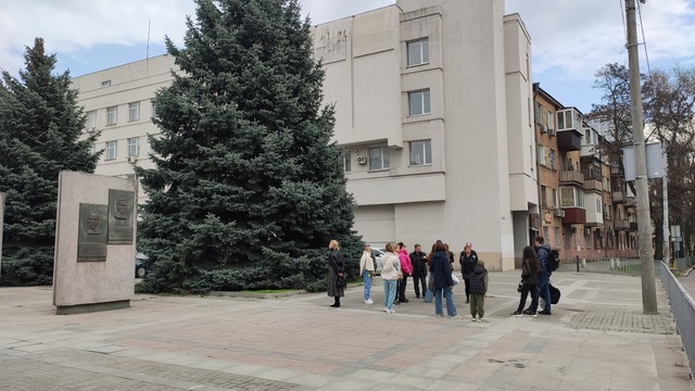 А навпроти оселі Езау – колишня Друга жіноча гімназія. Щоправда, вже від 1914 року вона є шпиталем для військових. На лихо путівцем нам трапилися й сліди нещодавнього обстрілу міста. Та місто попри те живе і не здається. Суботнього дня працює будівельний кран, відновлюється житловий будинок, який нещодавно потерпів від варварського ворожого нальоту. А в ньому ж жив і помер бандурний батько Микола Богуславський! Скільки подиву гідних імен. Скільки непрочитаних сторінок «кам’яної книги»! Скільки непошанованих містом пам’ятними дошками краян… Нема пророка на своїй землі? Хіба можна було б лишатися недостойними в оточенні такої кількості достойників?