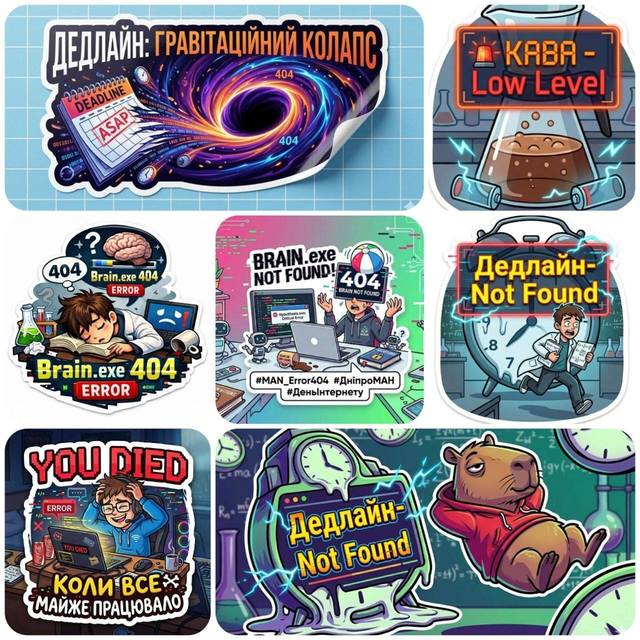 Наші вихованці довели, що навіть статус «Not Found» - це привід для крутого дизайну та влучного гумору. Тепер наші чати поповнилися ексклюзивними стікерпаками, які зрозуміє кожен науковець та айтішник: