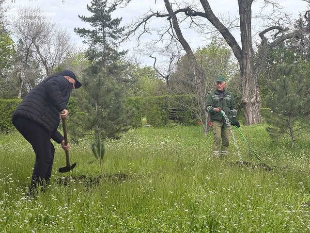 На этот раз парковую зону украсили молодые сосны и красные клены. Как отметила заместитель директора коммунального предприятия «Городская инфраструктура» Днепровского городского совета Любовь Чадина, такое начало дня стало для участников символическим: