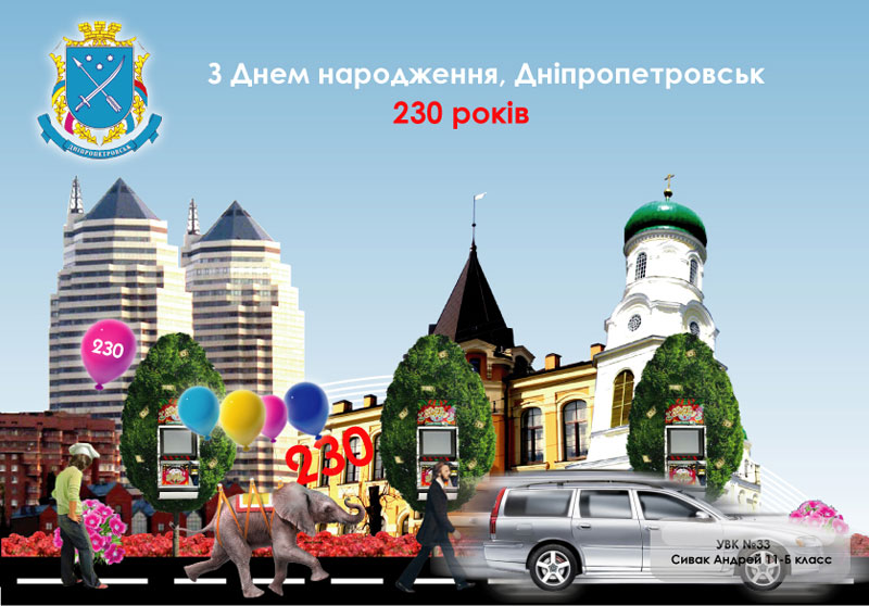 И, в заключении, вот такой коллаж-поздравление всем горожанам прислал нам пользователь gorod.dp.ua, ученик 11-Б класса - Сивак Андрей: