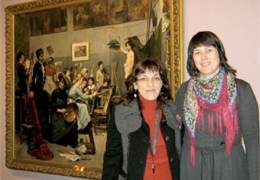 Директор Днепропетровского художественного музея Татьяна Шапаренко (справа) и куратор галереи Палома Мартин в Мадридском музее возле картины «В студии». Фото предоставлено Днепропетровским художественным музеем.