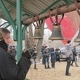 Вскоре в воду заходит мужчина с двумя дочками. Девочки визжат, но веселятся. Вся тройка трижды с головой окунается в воду и вылезает на берег сохнуть. «Первый раз окунаются», - признается довольный отец.