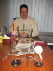 ![]() Александр Попов, старший уполномоченный ОБНОН Днепродзержинска демонстрирует изъятое в нарколаборатории |