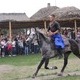 От показательных выступлений молодых казаков на лошадях дiти були у захватi! Хлопчики показали на только сложные акробатические трюки, но и умение владеть казацким оружием. А потом школьники целенаправленно разбрелись по хутору. Одни катались верхом на лошадях, других дед Толя катал на бричке. Под веселую музыку провел дискотеку и конкурс песен казак Сергiй, мальчишки и девчонки стреляли из лука, играли в казачий волейбол, учились ходить на казацких ходунках, получали поощрительные призы и приобретали сувениры. Кто правильно отвечал на вопросы по истории Украины, получил памятные сувенирные монеты, о которых я упомянул вначале. Согласитесь: взять в руки кувалду, ударить правильно по пресс-форме и получить монету - очень интересно! Все это я с удовольствием фотографировал.