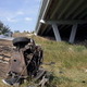 Дядько  (06.08.12 18:40): Судя по последнему фото, машина ещё до моста ушла вправо в кювет и в овраг. Причины не названы, а они могут быть какими угодно. Если ехать на большой скорости и налететь на выбоину (те мосты по новомосковской объездной очень убитые), то вполне можно уйти в занос и перевернутся. А мог быть виноват и другой участник движения или сама отвлеклась...