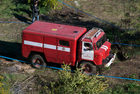 Следующих три грузовика, учавствовавших в гонке - два ГАЗ-66 и ГАЗ-63, принадлежат коллекционеру из Днепропетровска. Красный "Газон" был выкуплен у Вооруженных Сил и восстановлен. Грузовик прекрасно прошел трассу. Зеленому ГАЗу также несложно было пройти трассу. ГАЗ-63 сразу очень резко начал проход дистанции, но под самым финишем, грузовик сломался и до конца соревнований сошел с дистанции.