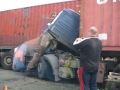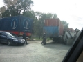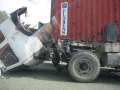 Сегодня в первой половине дня на выезде из города по криворожской трассе произошло столкновение 2-х фур, в результате которого у одной из фур оторвавшийся контейнер снес кабину водителя.