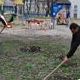 В уборке приняло участие около десяти человек. Убирали от мусора саму детскую площадку, в том числе и оттирали с горок и качелей грязь и жвачки с помощью ацетона. На прилегающей к площадке территории небольшого пустыря с помощью граблей были собраны сухие ветки и опавшая листва. Все это «добро» сложили в несколько больших куч, которые директор местного коммунального предприятия Вячеслав Базов пообещал в течение нескольких дней вывезти.