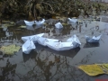 Ещё раз вспомнить детство участникам пришлось складывая из бумаги кораблики, которые потом пускали по воде. А воду нужно было ещё найти.