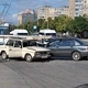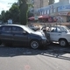 Водитель иномарки обогнал, через двойную сплошную, стоящие на светофоре автомобили и допустил столкновение с "шестеркой", завершающей проезд перекрестка.