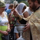 В центре площади расположился священник – ведь сегодня церковный праздник, который в народе связывают с освящением меда. Вот пасечники и попросили батюшку осветить их продукцию. Сначала священник обошел выстроившихся кругом с баночками меда покупателей, а затем пошел по палаткам с продукцией. Каждого пасечника поздравил с праздником и освятил продукцию.