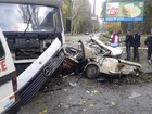 По словам очевидцев, почтовый «Мерседес» ехал со стороны Днепропетровска, перед ним шла иномарка, которая резко затормозила перед пешеходным переходом. «Мерседес», пытаясь уйти от столкновения, выехал на «встречку», где столкнулся с «Жигулями». Как видно на фото, «Мерседес» буквально смял «Шестерку».